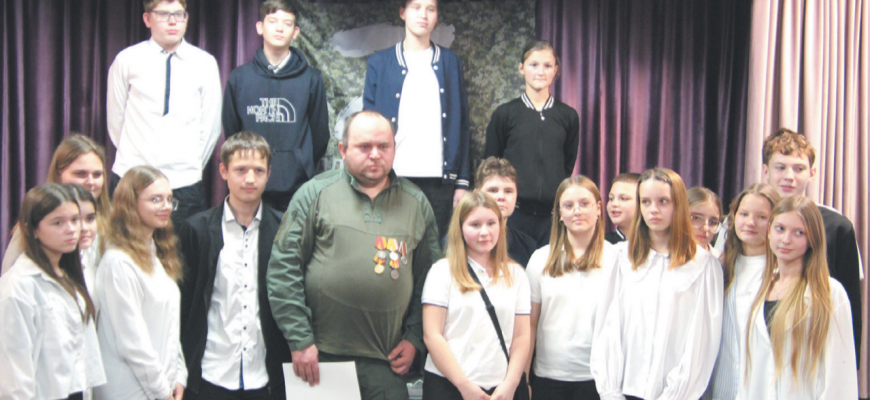 Романом Голуб. Находясь в отпуске, он нашел время, чтобы встретиться с ребятами трех школ поселка и провести «Урок мужества». Это был не просто разговор поколений, а возможность узнать историю из уст участника спецоперации, который принимает участие в знаковых событиях.