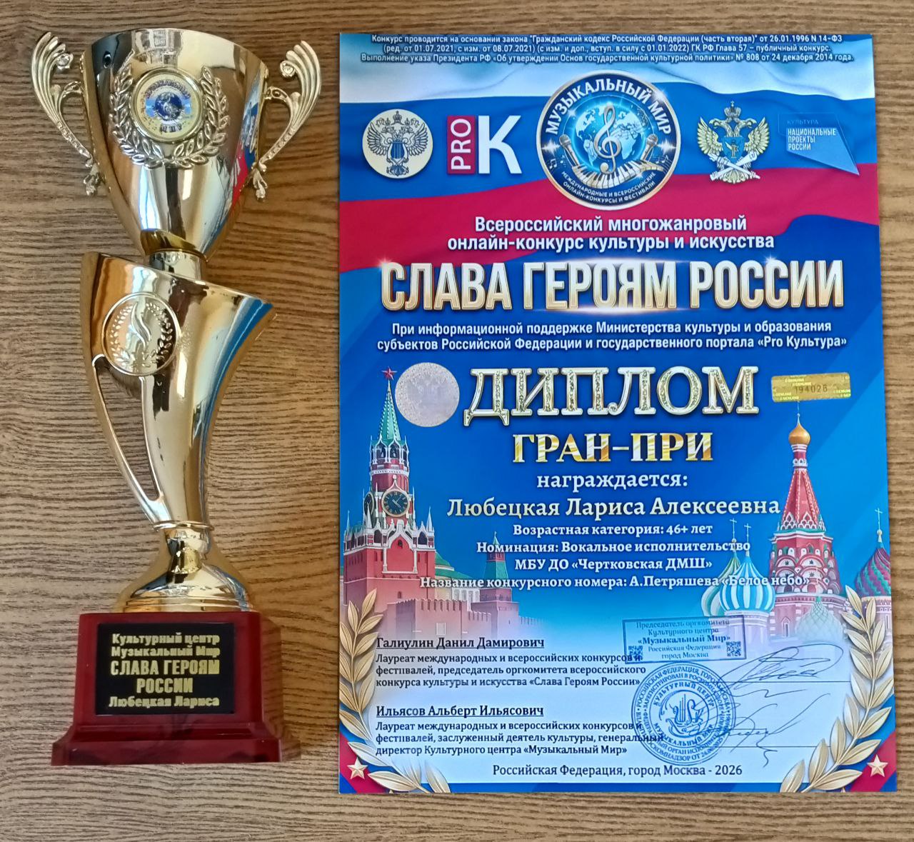 Лариса Алексеевна стала обладателем Гран-при! Награждена кубком и дипломом победителя.