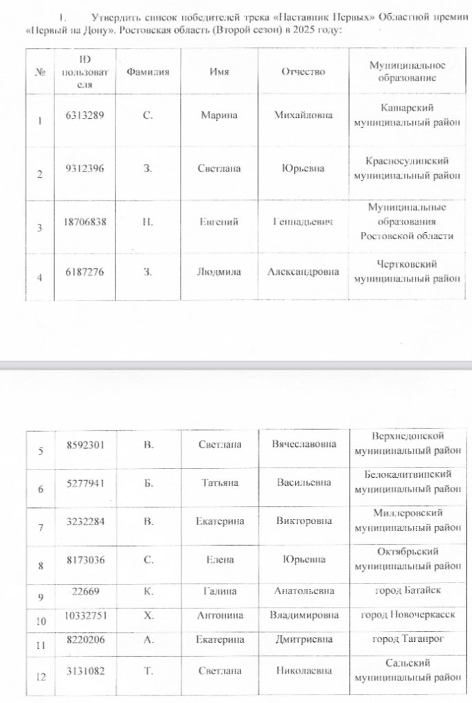 Список победителей областной премии «Первый на Дону» среди наставников — в файле под этим постом. Награда ждёт вас на итоговой региональной конференции Движения Первых!