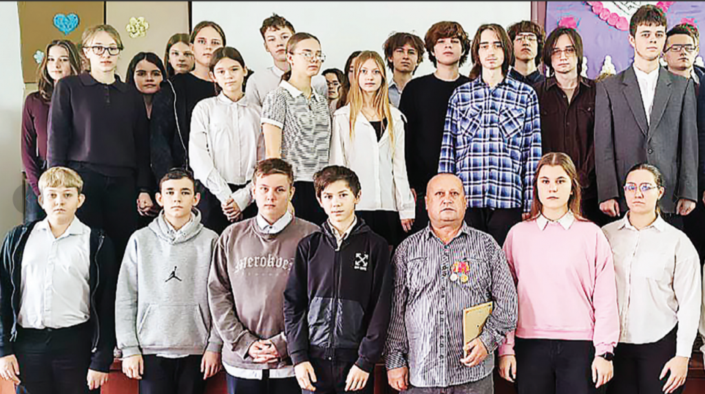 На уроке присутствовал отец учеников нашей школы Куликов Роман Сергеевич – участник СВО, ныне уволенный в запас после полученного ранения.