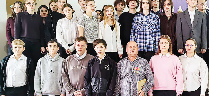Во время урока участник СВО — герой наших дней -рассказал ученикам и учителям о важном значении спецоперации, о боевых ситуациях, о большой любви к родной стране и соотечественникам, о желании защитить родных и близких людей, о мужестве и