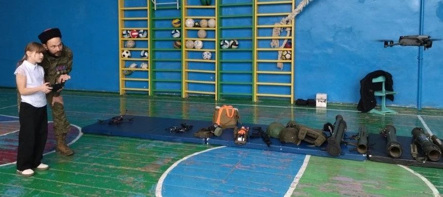 Мероприятие в самой отдаленной от райцентра школе вызвало неподдельный интерес со стороны местных школьнкиов. Двадцать учеников 5-11 классов с заметным интересом ознакомились со стрелковым вооружением нашей армии, макеты которого казаки юрта доставили в учебное заведение. Особую заинтересованность мальчишек и девчонок вызвала появившаяся возможность управления настоящим квадрокоптером. Было задано немало вопросов, на которые ветеран двух вооруженных конфликтов (вторая Чеченская война и Специальная Военная Операция) В.Г. Бондарев постарался ответить подробно и обстоятельно.