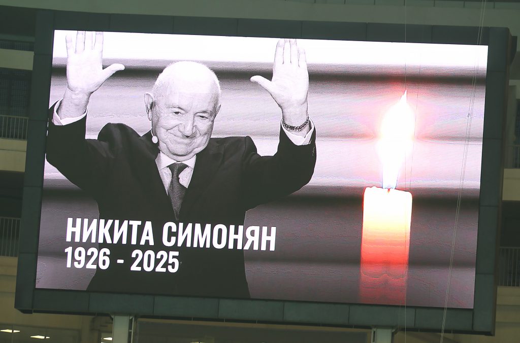 После выхода команд на поле объявили минуту молчания в память о легендарном футболисте Никите Павловиче Симоняне.