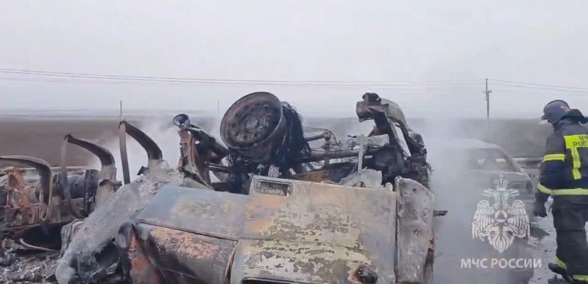 От удара топливный транспорт загорелся. Площадь возгорания составила 200 квадратных метров. Жертвами аварии стали три человека. Еще четверых пострадавших доставили в больницы Таганрога.