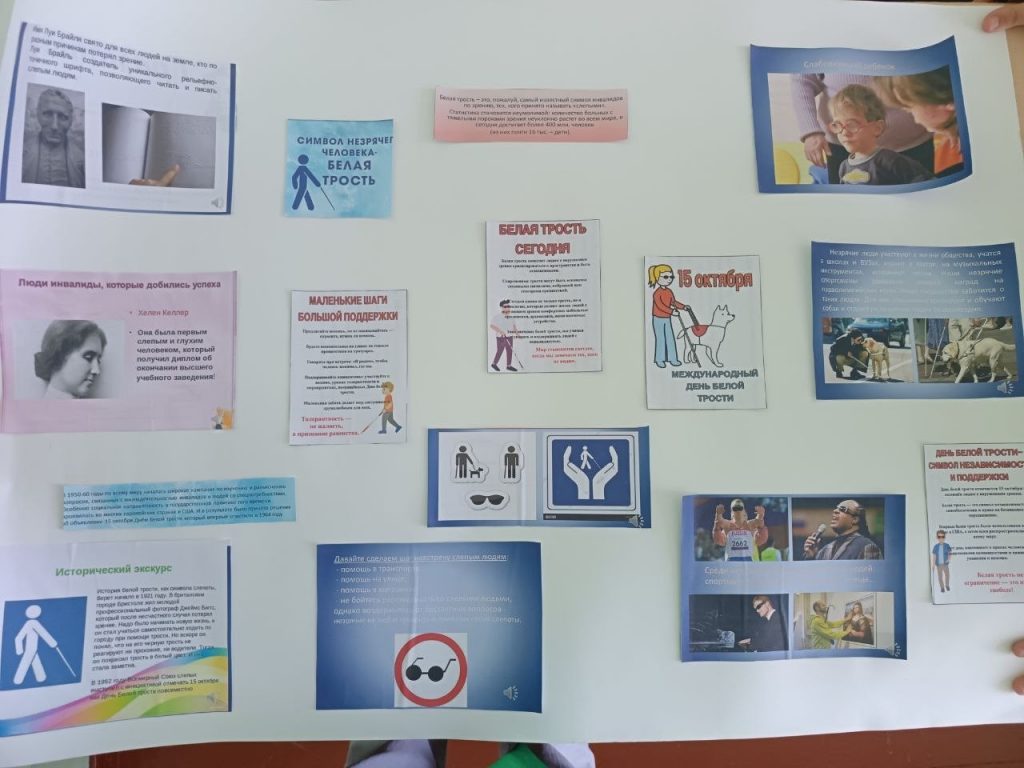Ребятам было рассказано об истории Дня белой трости, о том, что слепые люди по-другому воспринимают окружающий мир, почему символом незрячего человека стала именно белая трость. Задача этого мероприятия – вспомнить о том, что рядом с нами, живут те, кто не видит всех красок мира.