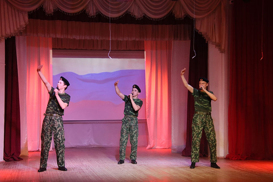 На сцене звучали произведения о военной тематике, любви к Отечеству и повседневной жизни солдат.