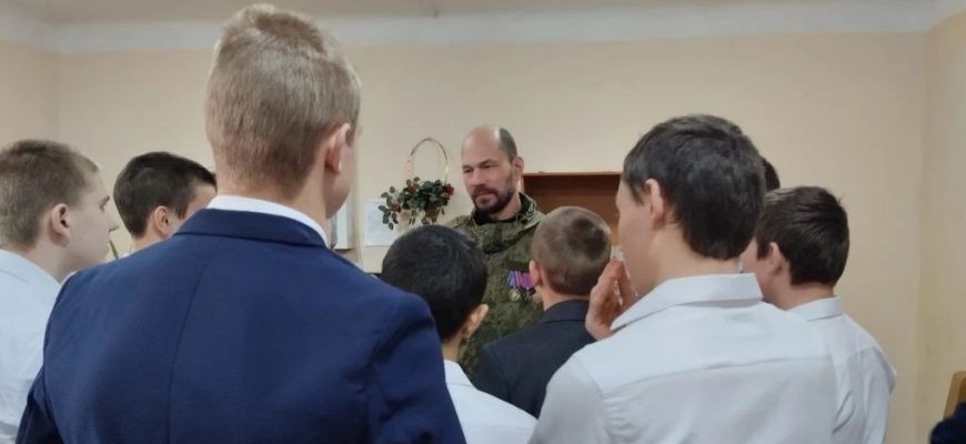 В.Г. Бондарев, который является ветераном двух боевых конфликтов (вторая Чеченская война и Специальная Военная Операция), рассказал мальчишкам о своём участии в боевых действиях, фронтовых трудностях и радостях, боевом братстве, основанном на любви к Отечеству.