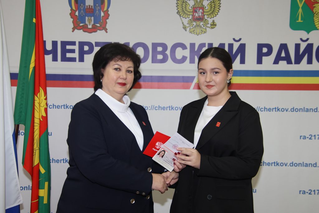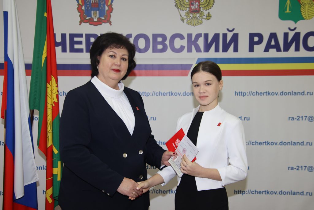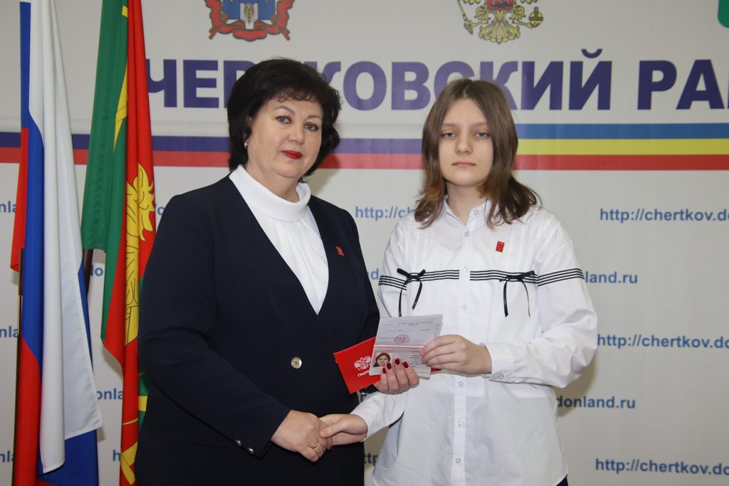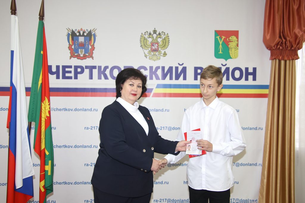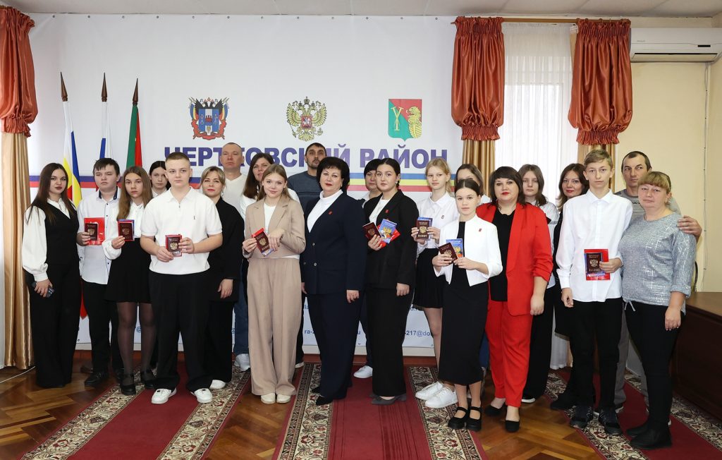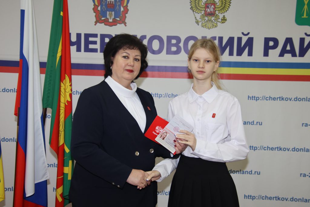 Сегодня, в день Конституции Российской, Федерации, в Чертковском районе состоялось значимое событие, которое навсегда останется в памяти наших юных земляков. В праздничной обстановке Глава Чертковского района Ольга Ивановна Подгорная лично вручила главный документ гражданина Российской Федерации – паспорт – активистам Российского движения детей и молодёжи «Движение Первых».