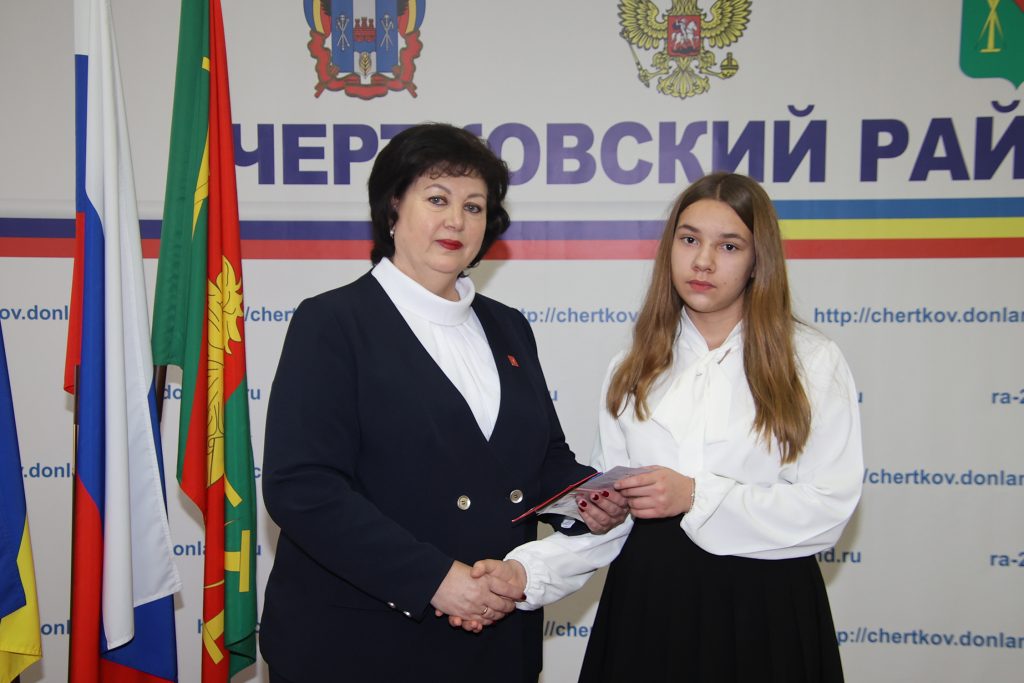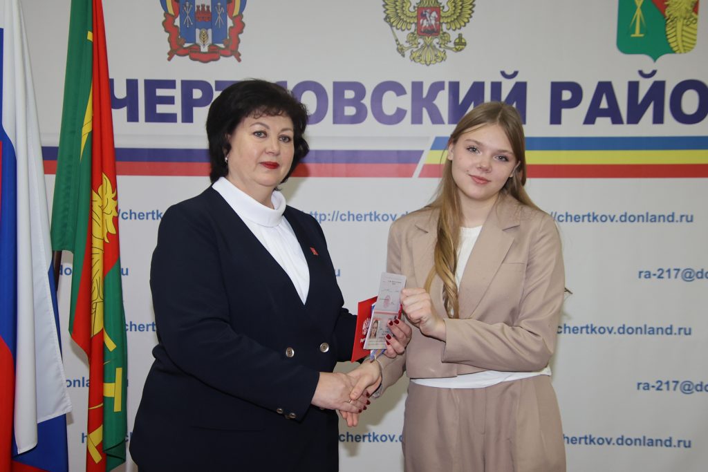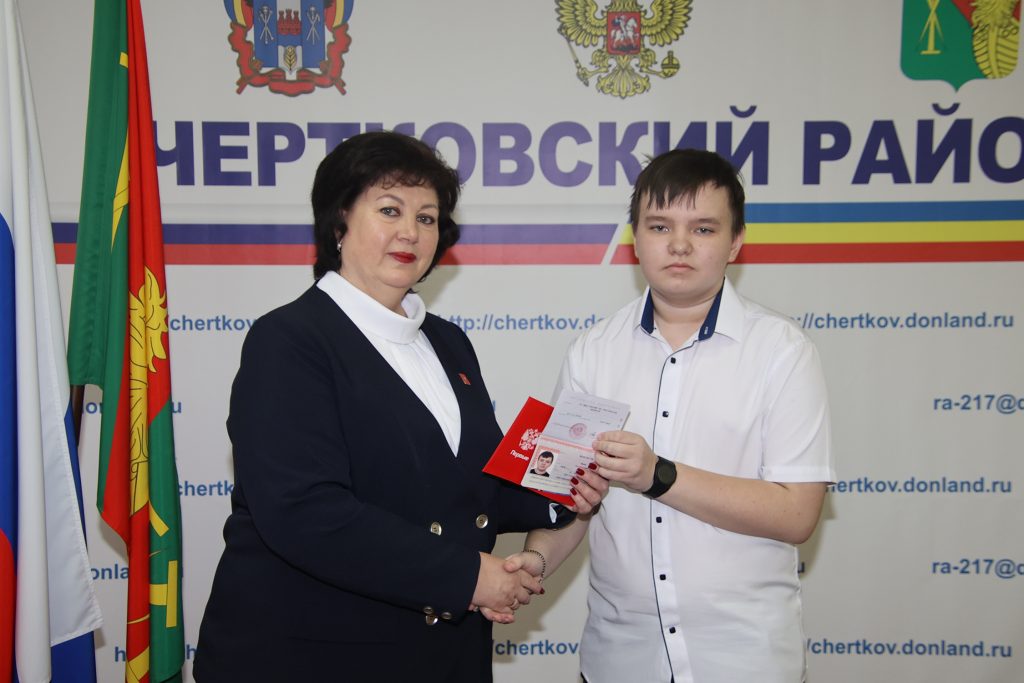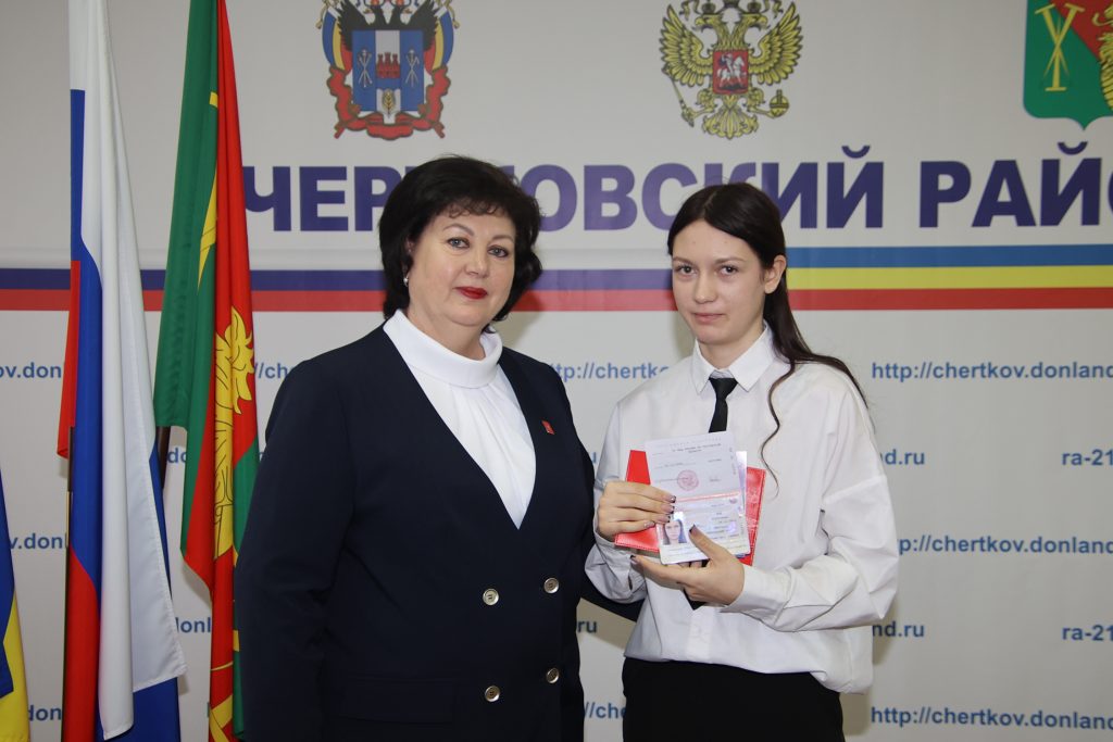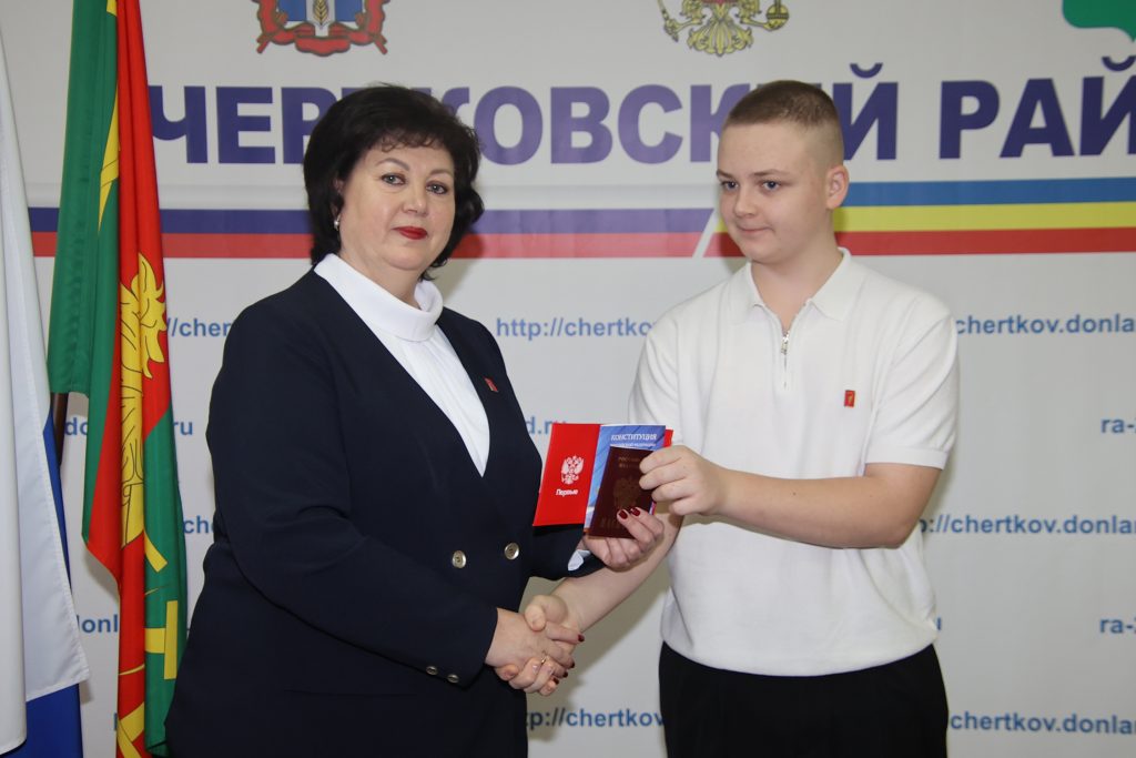 Сегодня, в день Конституции Российской, Федерации, в Чертковском районе состоялось значимое событие, которое навсегда останется в памяти наших юных земляков. В праздничной обстановке Глава Чертковского района Ольга Ивановна Подгорная лично вручила главный документ гражданина Российской Федерации – паспорт – активистам Российского движения детей и молодёжи «Движение Первых».