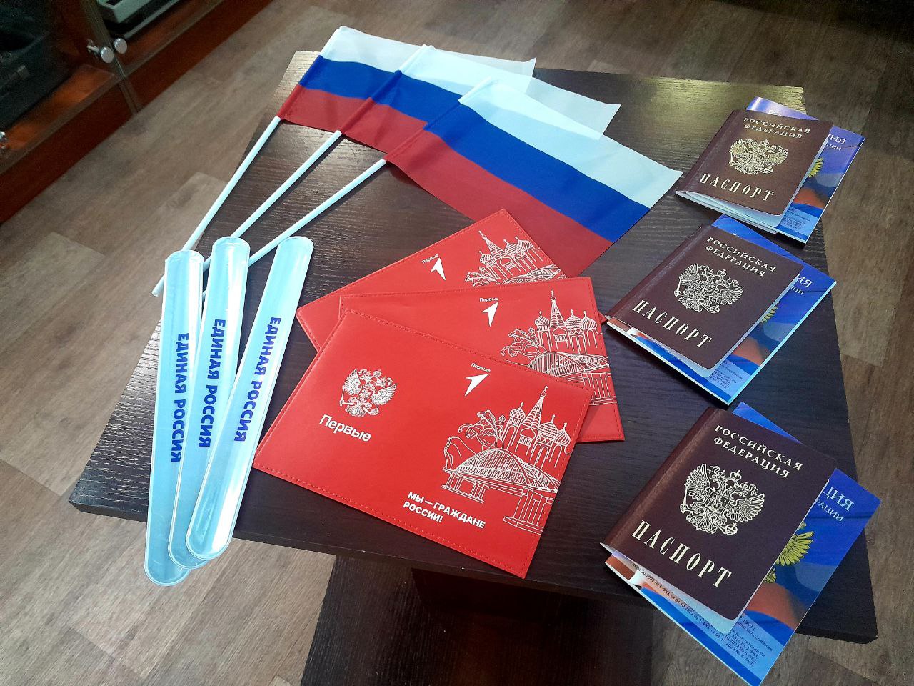 Вместе с первым документом детям вручили основной закон страны, гарантирующий права и свободы граждан. Это подчеркивает важность правового образования и формирования гражданской ответственности среди подрастающего поколения. На память каждому участнику церемонии достались обложки на паспорт с символикой Движения Первых.